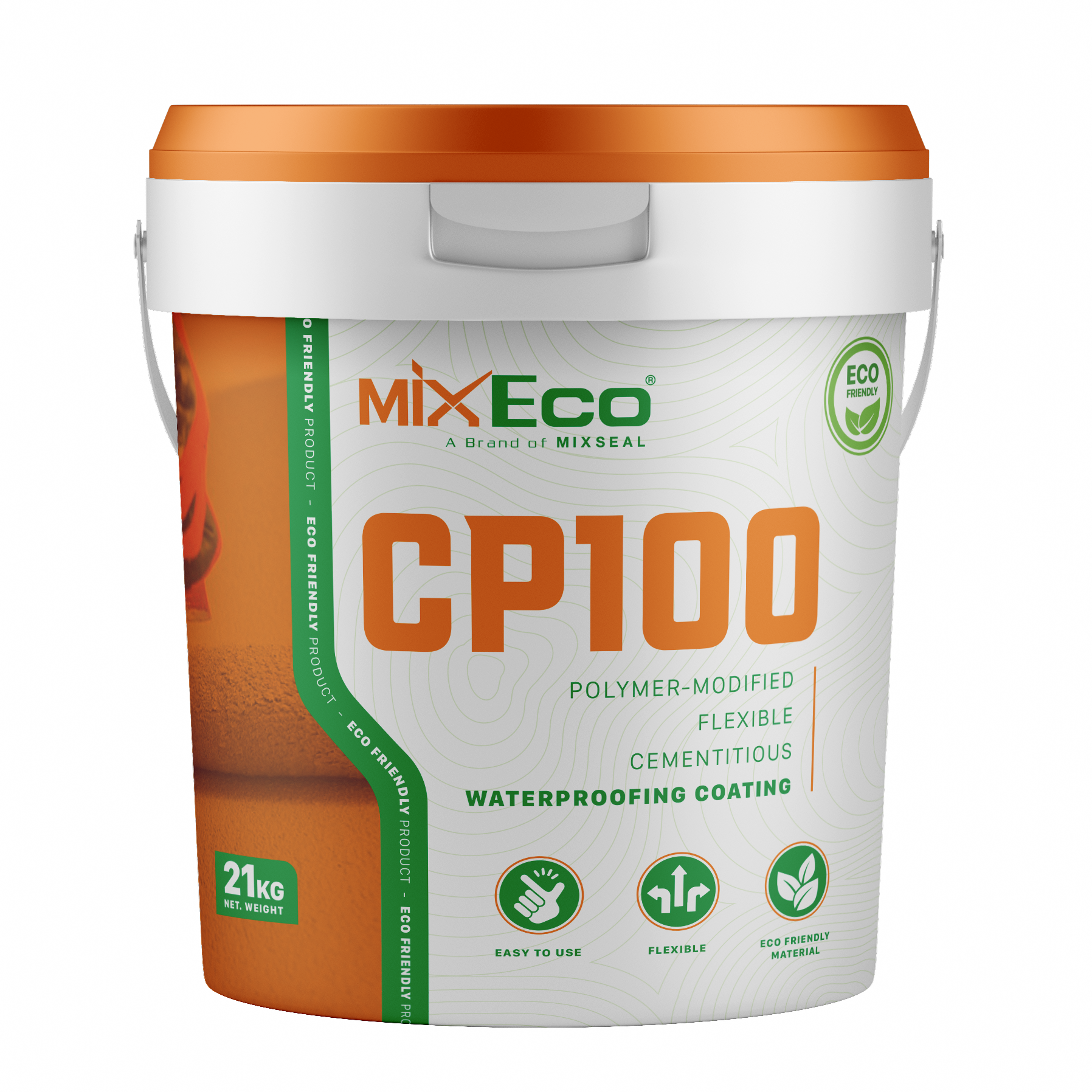 Vữa chống thấm Mixeco CP100 là là màng chống thấm đàn hồi, 2 thành phần gốc xi măng, kết hợp với polymer đặc biệt, thi công quét lỏng và tự bảo dưỡng nhờ hơi ẩm.